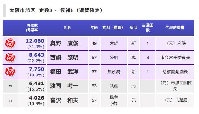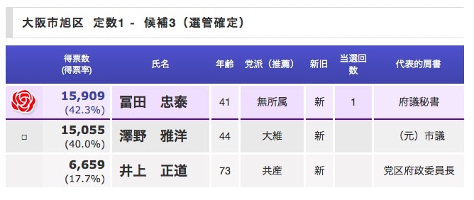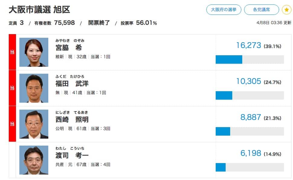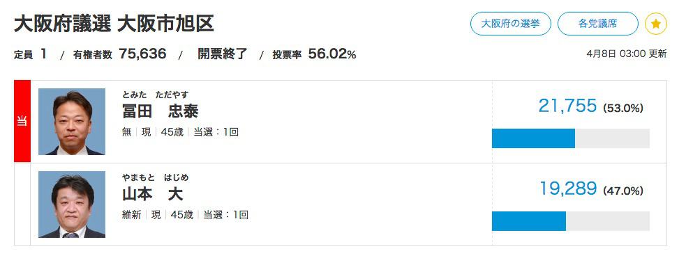 大阪旭区の府議会選挙について