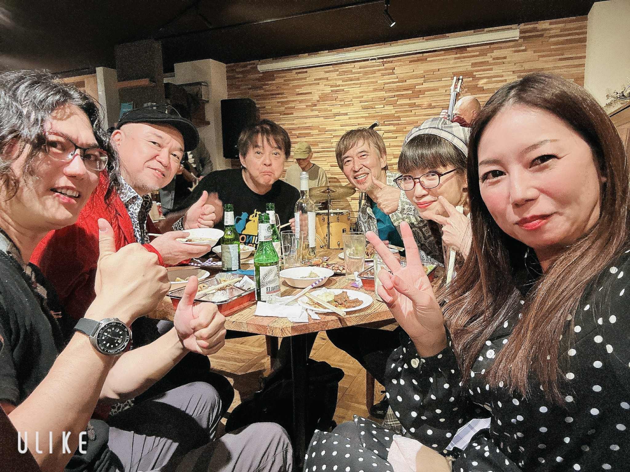 打ち上げの場で、まずは倉知恵子さん、古川初穂さん、宮崎隆睦さんのライブをじっくり堪能。少人数ならではのタイトで洗練されたサウンドに鳥肌が立ちました。